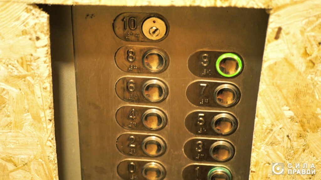 Хоча по документах будинок має дев’ять житлових поверхів, підвал та горище, ліфтом можна доїхати на одинадцятий. Перший, так званий підвал, у ньому позначений цифрою нуль. Далі йдуть кнопки від 1 до 9 – житлові поверхи. Вище, згідно з документами, має бути горище. У ліфті є кнопка з цифрою 10. Втім, скористатися нею не можна – кнопка знаходиться під замком.