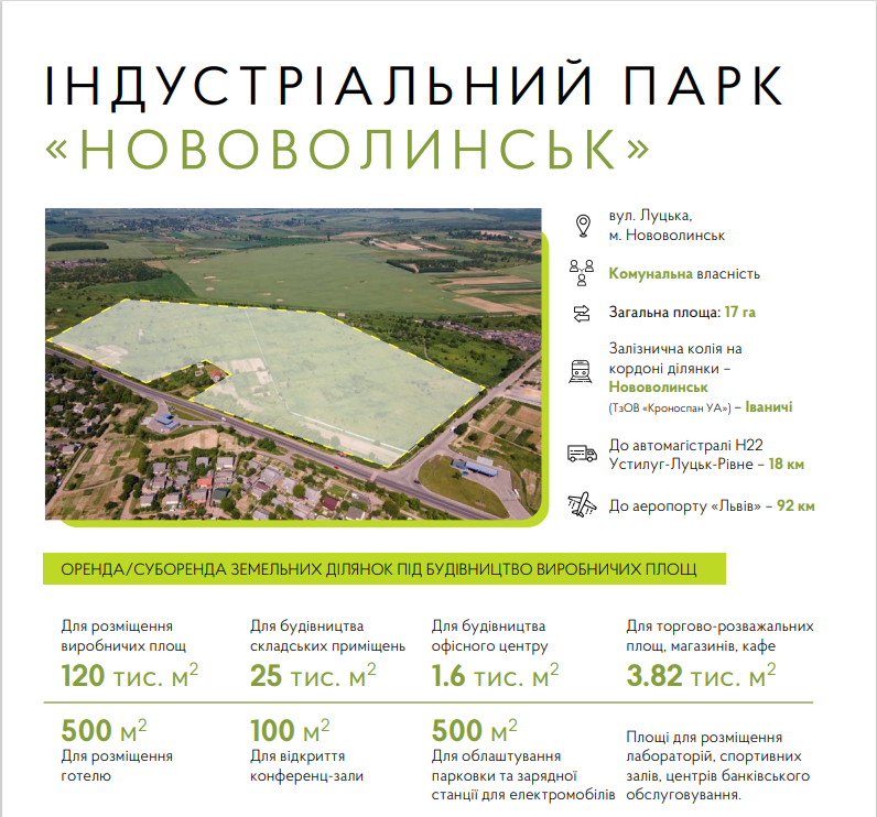 – Сам індустріальний парк ми отримали «в спадок» (від попередньої влади, — ред.). На сьогодні це земельна ділянка площею 20 гектарів біля траси. Там є всі комунікації. Через дорогу знаходяться цементний і асфальтний завод, електропідстанція і виробництво металоконструкцій.