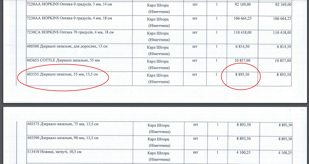 Щипці назальні цього ж бренду в інтернет-магазині продаються за майже вісім тисяч гривень, Нововолинська лікарня заплатить за них понад 18 тисяч за одиницю.