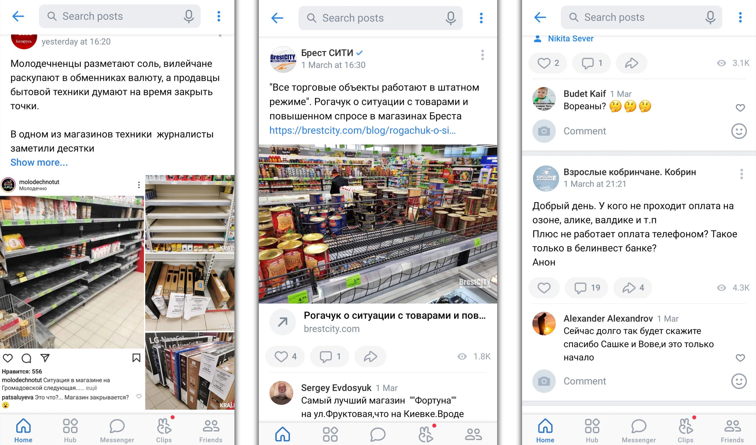 Проте сильніше на повсякденному житті білоруського прикордоння позначилися санкції, нестабільність валюти та паніка, через яку почали спустошувати полиці магазинів. Також через санкції та кібератаки відзначали труднощі із оплатою картками і розрахунком на міжнародних платформах.