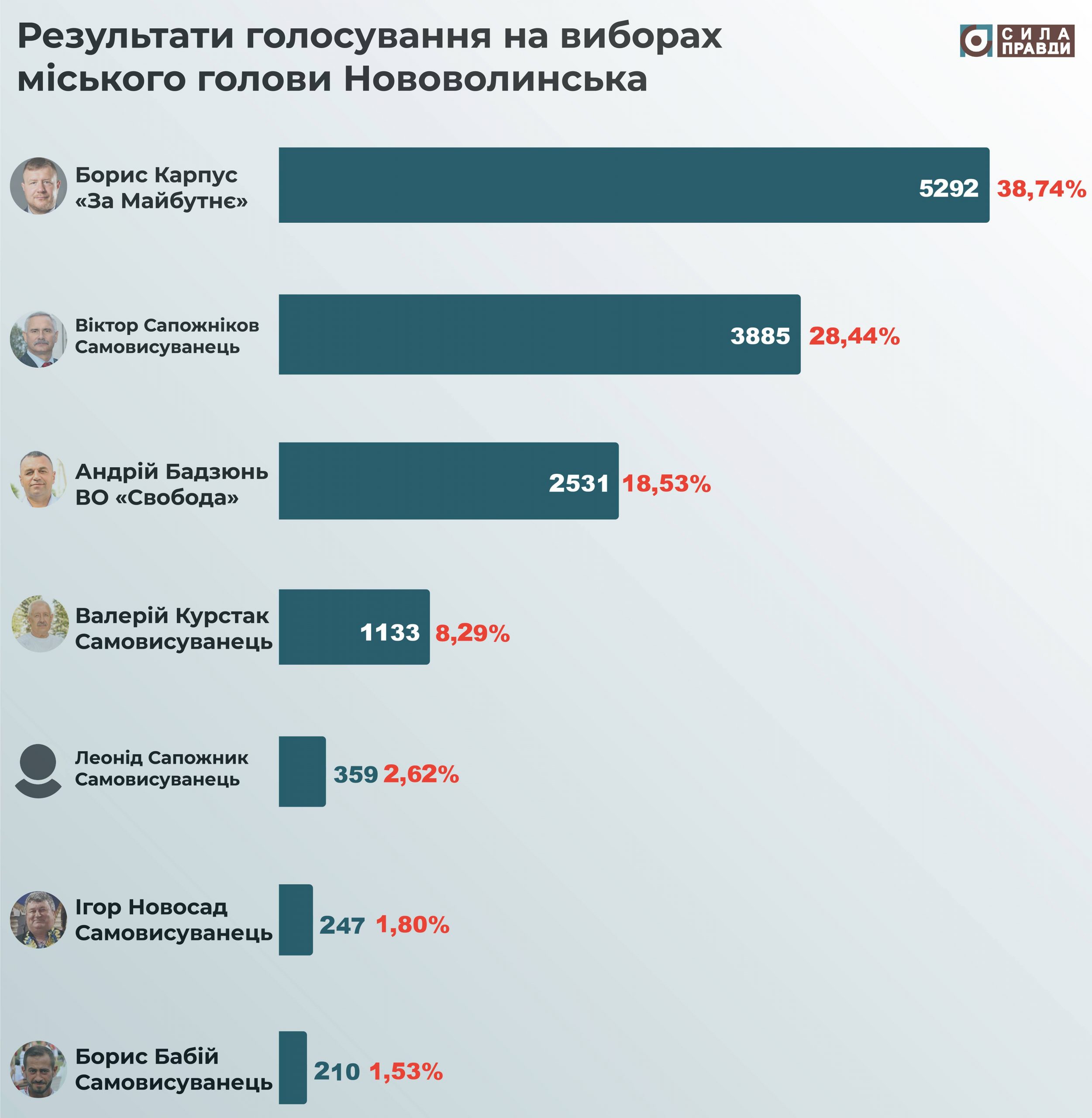 Менше трьох відсотків голосів отримали самовисуванці Леонід Сапожник, Ігор Новосад, Борис Бабій.