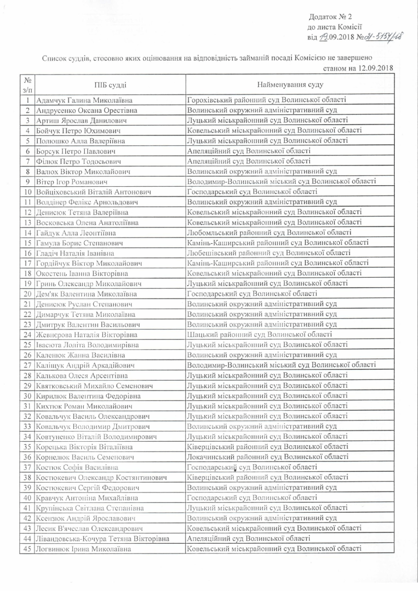 Раніше ми писали про тих суддів із Волинської області, які вже пройшли кваліфікаційне оцінювання на відповідність займаній посаді. Нагадаємо, що під час судової реформи усі судді мають пройти цю процедуру у Вищій кваліфікаційній комісії суддів (ВККС). Ми показали, що до тих служителів Феміди, які вже це зробили – є багато питань з приводу їхньої доброчесності. Не менше запитань і до тих суддів, які проходять процедуру оцінювання зараз чи будуть це робити в найближчому майбутньому.