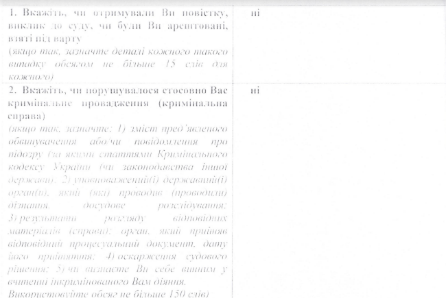 Однак подаючи своє досьє до Вищої кваліфікаційної комісії суддів, він зазначає, що проти нього не було порушено жодної кримінальної справи.