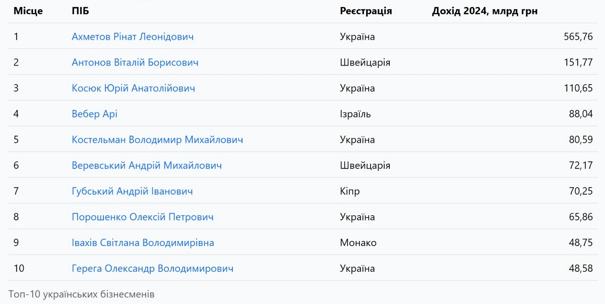 Відповідний рейтинг найуспішніших власників українського бізнесу підготував «Опендатабот».