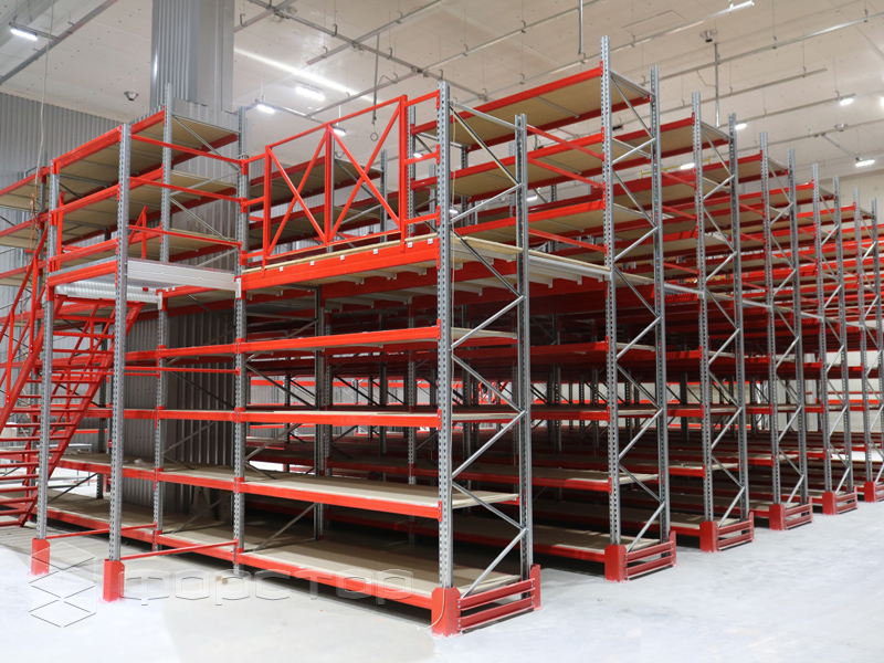 Чому саме ця конструкція є найпрактичнішою? Все дуже просто: лише мезонінні стелажні системи дозволяють максимально використати висоту приміщення для розміщення товарів. Проєктуються вони індивідуально під кожен склад та можуть обслуговуватись штабелерами, навантажувачами тощо.