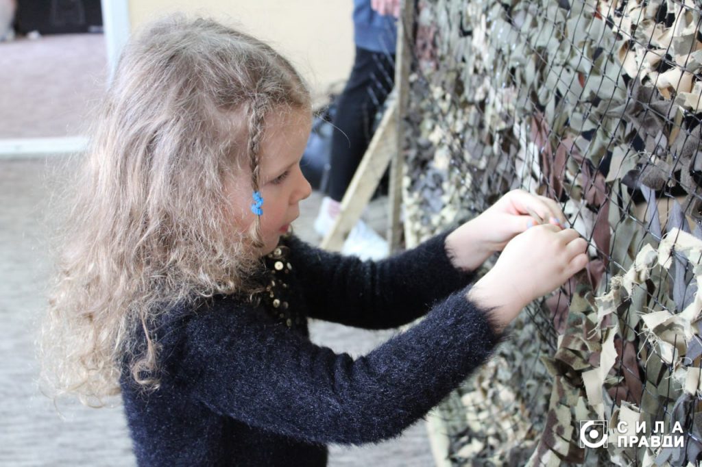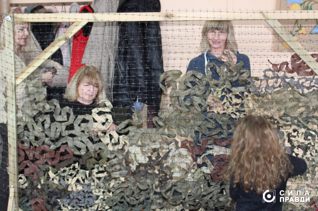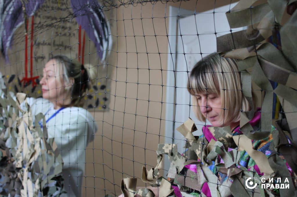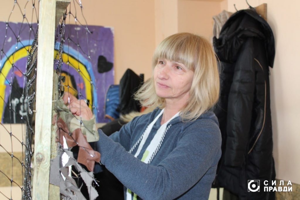 «Сітками накривають техніку і бліндажі. Наприклад, найменшу сітку ми плели розміром 2*3 м, а найбільшу – 10*30 метрів. Важливо враховувати місцевість, щоб правильно підібрати кольорову гамму сіток. Завжди прислухаємося до побажань військових. Зараз у нас замовили десять сіток розміром 2*3 метри. В середньому до 30 метрів квадратних маскувальних сіток плетемо в день. Це десь дві середні сітки. Також все залежить від кількості людей», – каже волонтерка Оксана Петрова.