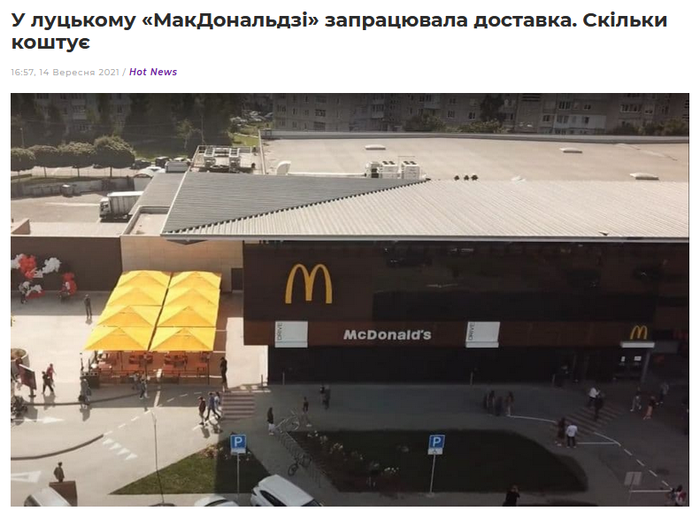 Джинсували цього тижня на новинах про «МакДональдз» – неодноразово медіа писали про послуги Макдональдсу в Луцьку та доставку їжі звідти, не звертаючи увагу, наприклад, на тему великих черг чи заторів на дорогах через відкриття. Один з прикладів новини з ознаками замовлення – сюжет на 12 каналі – «У луцькому «МакДональдзі» запрацювала доставка. Скільки коштує». Про доставку писав також і сайт «Перший», не використовуючи жодних позначок.