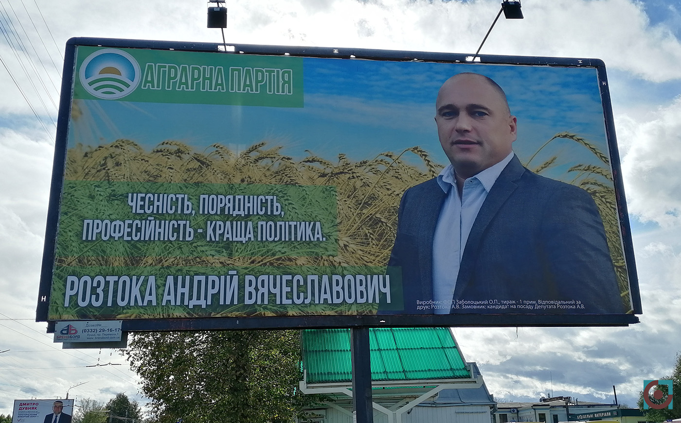 «Сила правди» нарахувала три білборди, де у вихідних даних було зазначено замовником Андрія Розтоку. Один – загальнопартійний, два інші – з агітацією за кандидата.