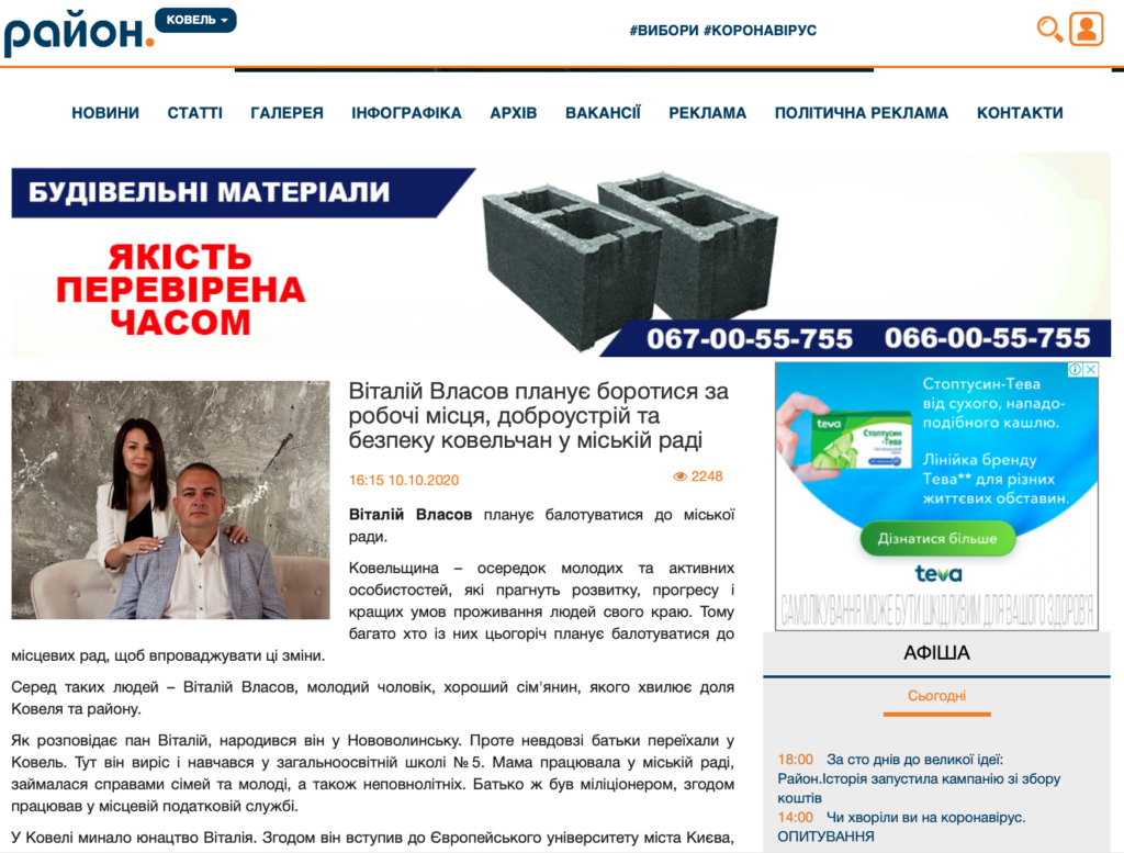 На послуги, пов’язані з проведенням виборчої кампанії (транспортні, бухгалтерські тощо), у політика пішло 4 тисячі 886 гривень 64 копійки, на виготовлення друкованої агітації – 12 тисяч 200 гривень. Насправді Віталій Власов часто рекламувався в районці «Вісті Ковельщини» і на сайті «Район Ковель», але про це у фінансову звіті не згадав.
