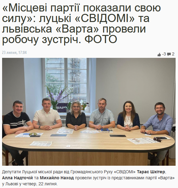 Медіа не може бути піар-майданчиком для політичних сил, проте деякі промоніторені видання та телеканали «грішили» цим. Так, про Громадянський рух «Свідомі» розміщували «джинсу» в контексті того, що депутати Луцької міської ради цього разу зустрілись із представниками партії «Варта» у Львові. Про це писав сайт ІА «Конкурент», «Волинь24», «ВолиньPost».