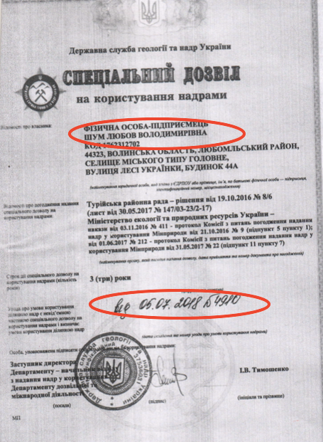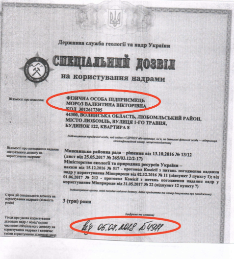 Спецдозволи на геологічне вивчення запасів піску в Держгеонадрах Любов Шум та Валентина Мороз отримали в один день – 5 липня 2018-го року. Без аукціону, одним наказом.