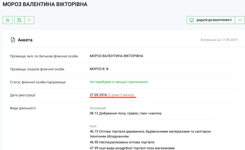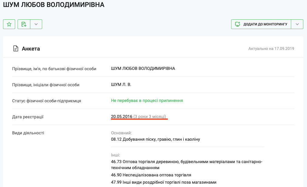 Неймовірне співпадіння, але пані Валентина зареєстрована підприємцем того ж місяця і року, як інша дослідниця надр на користь ТОВ «Рентленд Груп», її землячка Шум Любов Володимирівна.