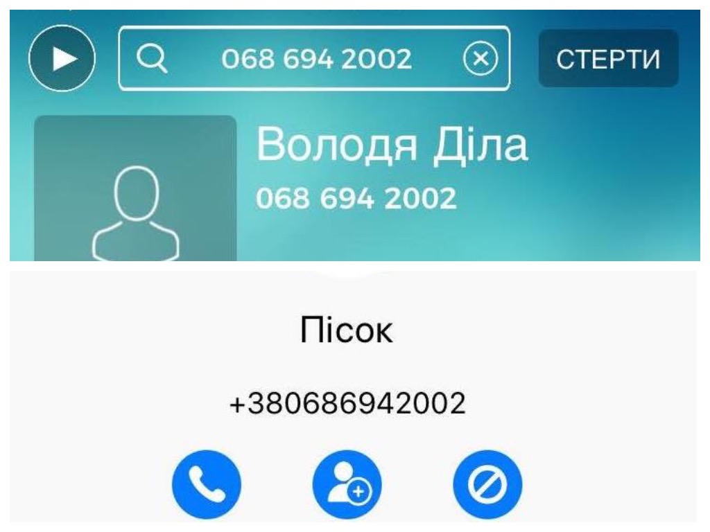 Використавши популярний мобільний додаток, вдалося з’ясувати, що цього абонента колеги і клієнти записують в контакти не як Валентину Мороз чи Дмитра Форманюка, а просто «Пісок» або ж «Володя Діла».