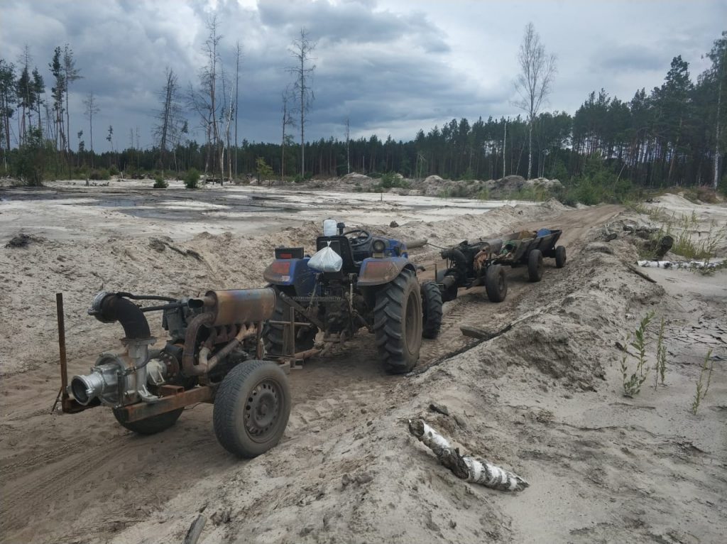 30 старателів, 9 мотопомп і 0,5 кілограма бурштину – результат рейду, здійсненого правоохоронцями на місця нелегального видобутку сонячного каменю в Зарічненському районі на Рівненщині.