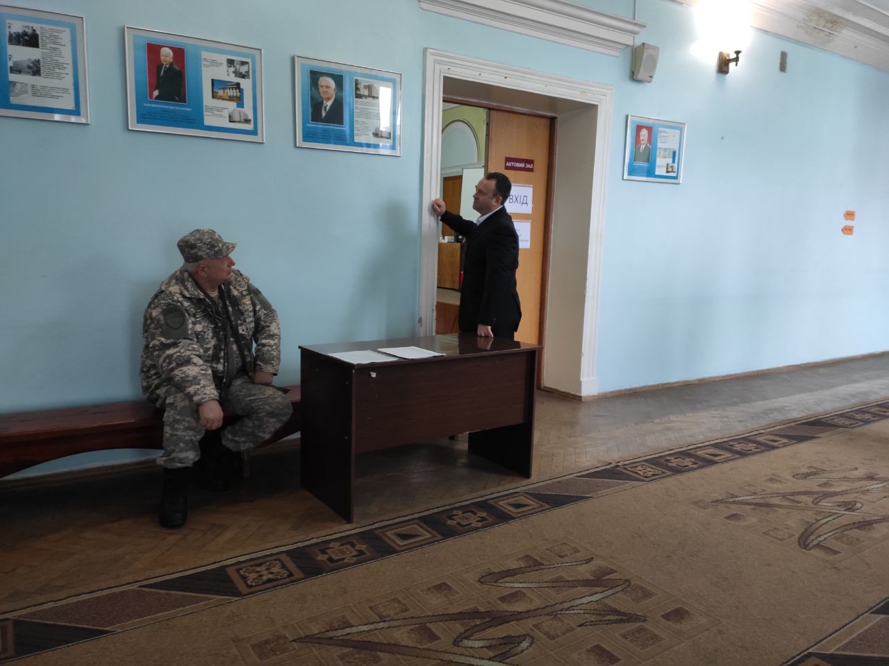 У день виборів з самого ранку в головному корпусі СНУ, де облаштували виборчу дільницю, чергували поліціянти. Біля входу в університет стояли автівки з силовиками. Правоохоронці були в холі та біля актової зали, в якій відбувалось голосування.
