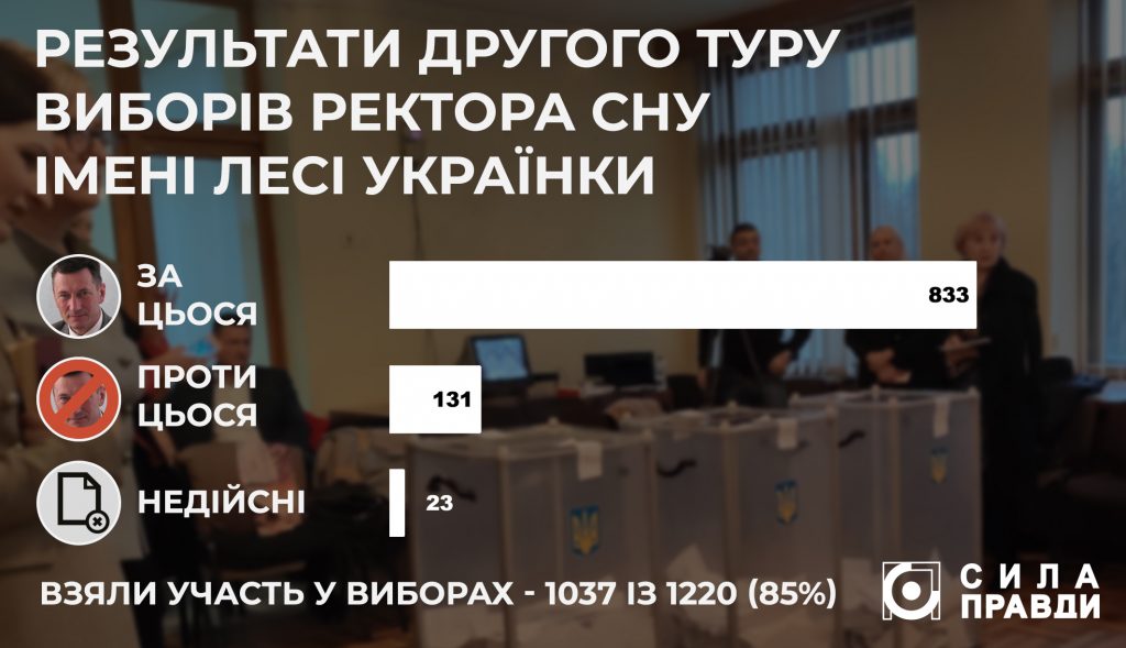 833 (тобто понад 85%) голоси на користь Цьося, 131 – проти, ще 23 бюлетені визнали недійсними. «Сила правди» проаналізувала, як проходив другий тур виборів ректора і поговорила про них з переможцем.