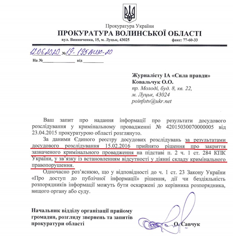 «Я всі матеріали передав в Держекоінспекцію начальнику для прийняття рішення»