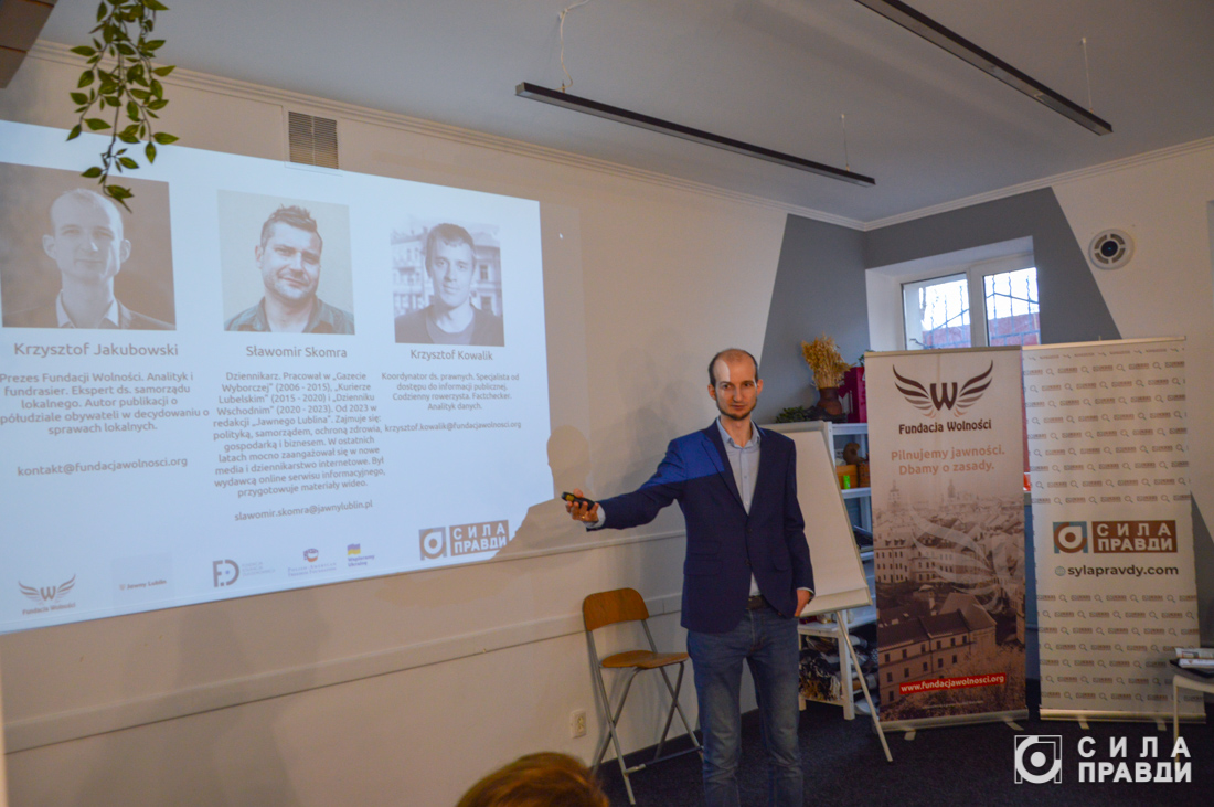 На зустріч із волинськими медійниками завітали засновник, президент і фандрайзер Фундації Свободи (видавець сайту jawnylublin.pl) Кшиштоф Якубовський та журналіст з багаторічним стажем Славомір Скомра.