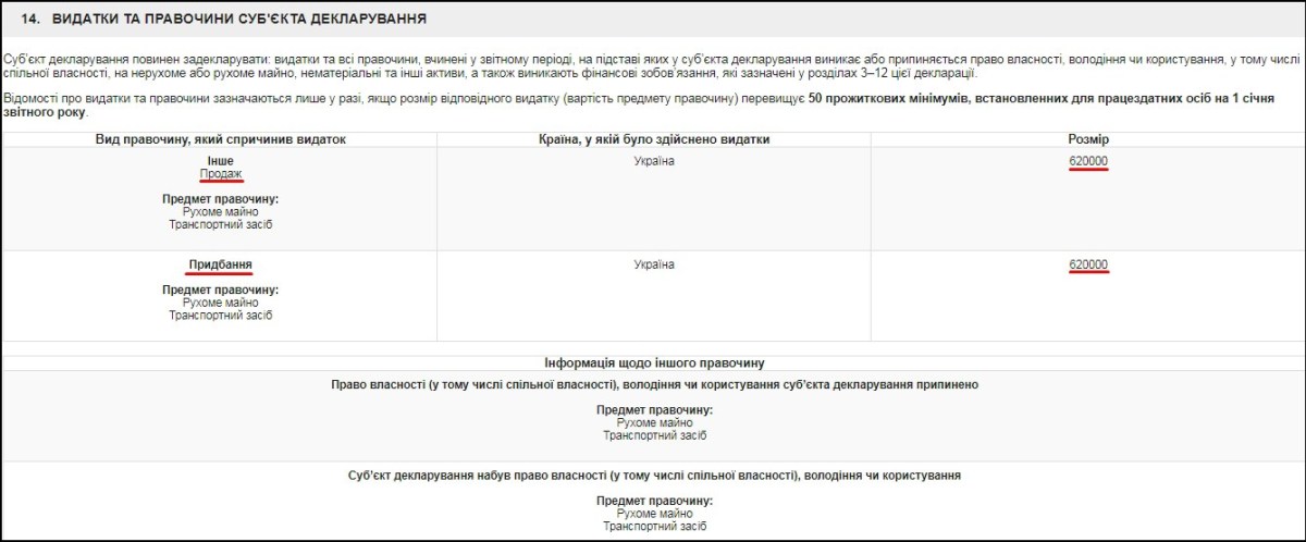 У декларації жінка уточнила, що продала старе авто за 620 тисяч гривень, а нове придбала за ту ж суму!