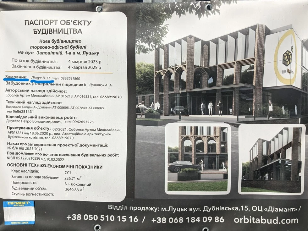 Начальник управління капітального будівництва Луцької міської ради Василь Ліщук вважає, що конфлікту інтересів у тому, що він є замовником спорудження торгово-офісної будівлі і одночасно представником влади, немає. Споруду, у паспорті якої вказано прізвище Ліщука, зводять неподалік центру міста з 2022 року. Сам Ліщук прийшов на посаду із будівельного бізнесу.
