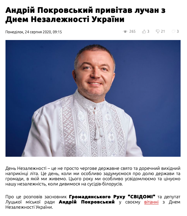 Позицію співзасновника руху щодо карантинної зони та інформацію про можливість обрати потенційних кандидатів розміщувало також видання «Волиньinfa».