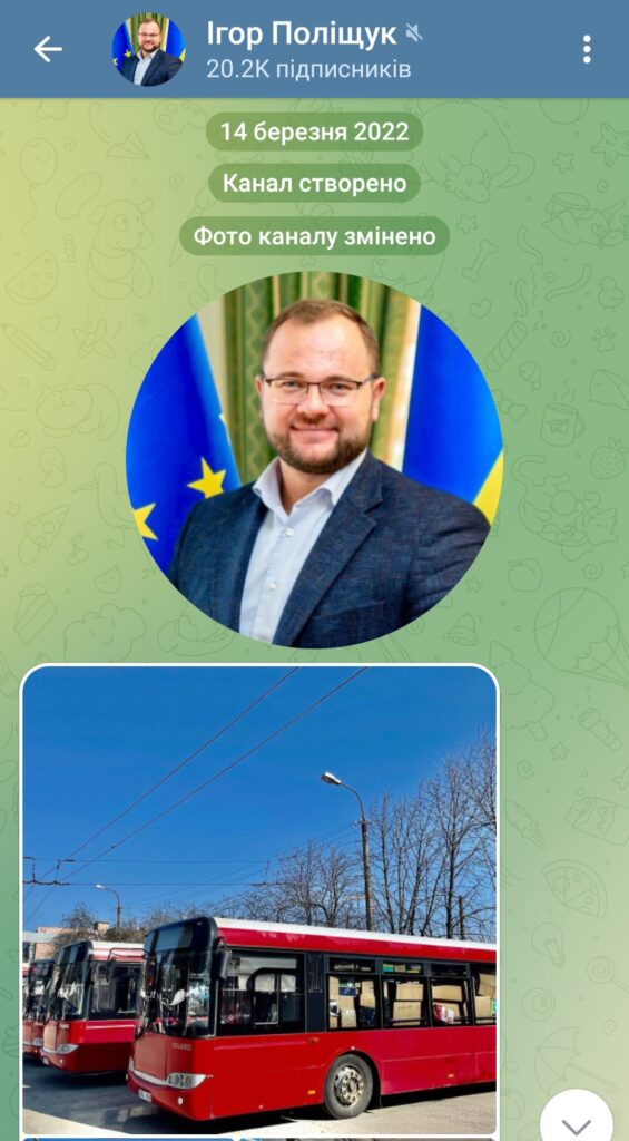 Телеграм-канал Луцького міського голови Ігоря Поліщука (20 246 підписників)