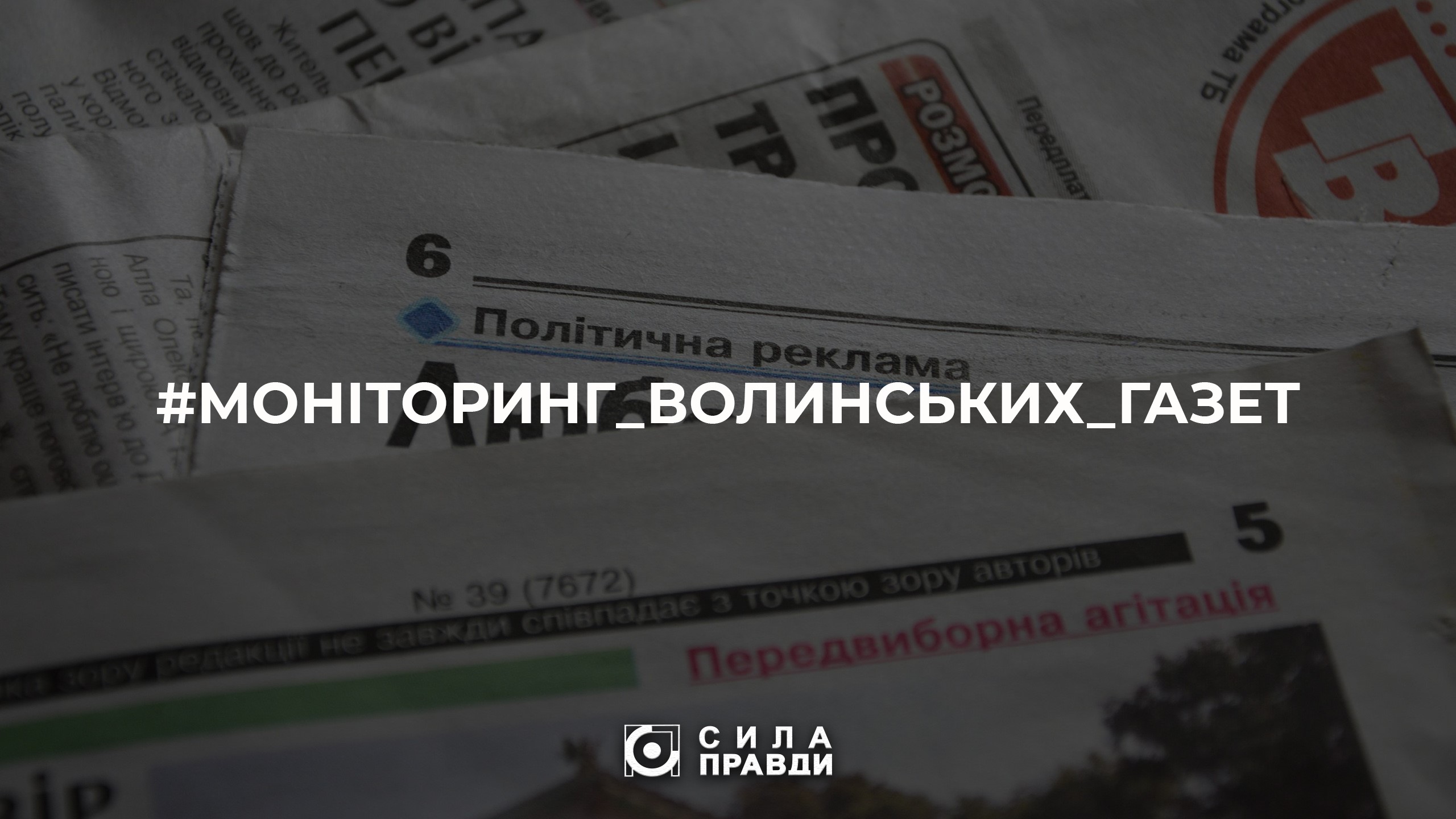 «Сила правди» підготувала вже третій моніторинг волинської друкованої преси, в який увійшла 21 газета, з яких 5 – обласного значення і ще 16 – районного. У вибірку за два тижні потрапили чотири випуски двох газет («Волинь» і «Наше життя») та по два випуски ще 19 видань. Що ми шукали? Новини й репортажі про політиків і партії, де про них йдеться виключно у позитивному світлі, політичні звернення, іміджеві інтерв’ю, привітання та решту матеріалів про політику, у яких не дотримано принципу балансу думок і відокремлення фактів від суб’єктивних суджень.