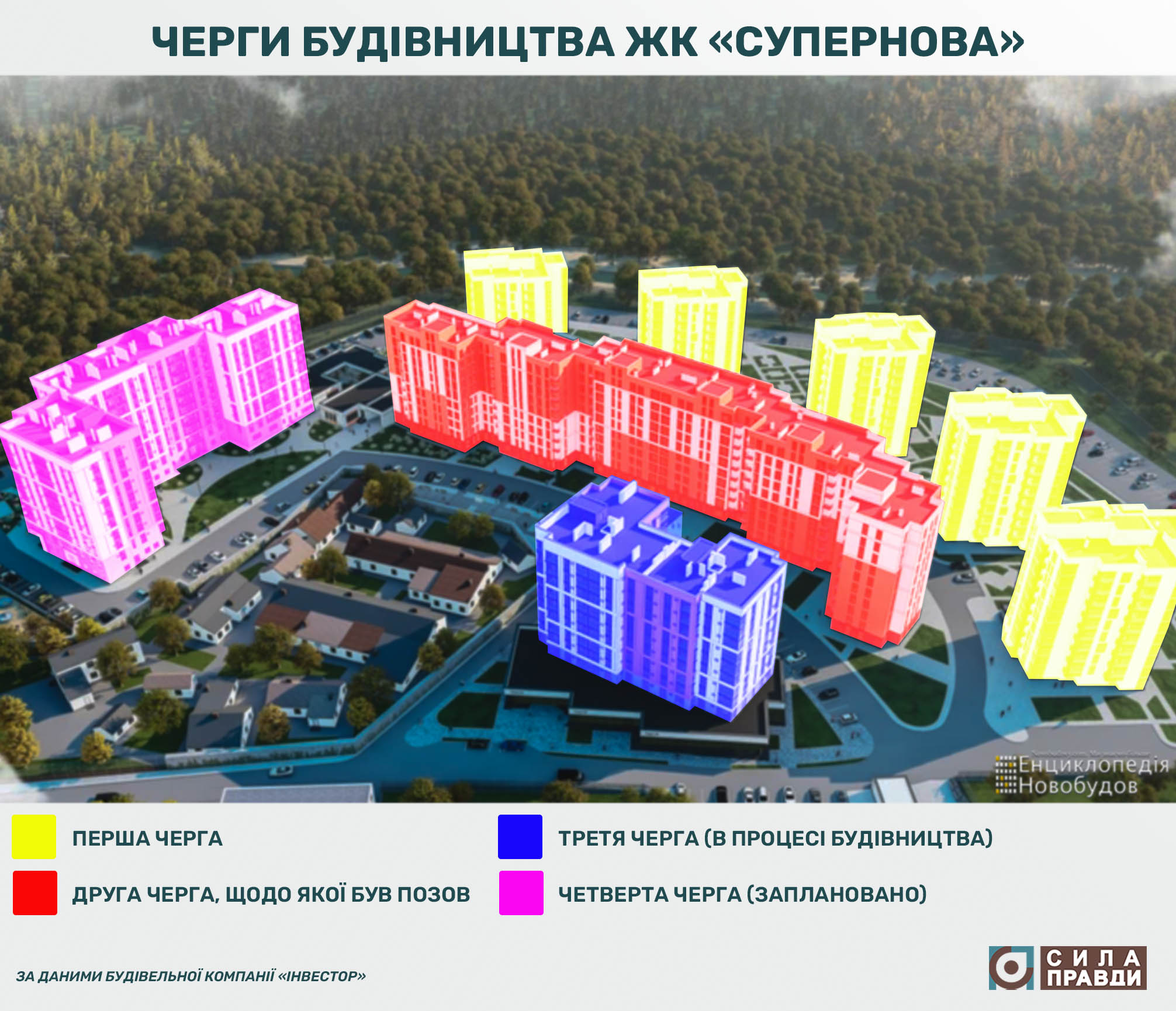Позов подали до житлово-будівельного кооперативу «Супернова», який формально є замовником цього будівництва. Генеральним підрядником за договором з кооперативом виступила фірма «Бетон брук сервіс». Серед власників цієї фірми значиться лучанин Сергій Стрихарчук, а також приватне підприємство «Будівельна компанія «Інвестор», яка рекламує будівництво всього ЖК як свій проєкт. Компанією «Інвестор» володіє депутат Луцькради від партії «За майбутнє» Андрій Разумовський. Він же є і співзасновником кооперативу «Супернова», до якого подали позов правоохоронці.