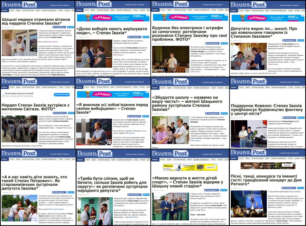 У звіт того ж Степана Івахіва не потрапили витрати на рекламу в інформаційному агентстві «ВолиньPost». Видання маркує рекламні статті зірочкою. Таких матеріалів про політика протягом червня-липня на сайті вийшло аж 12. А в фінзвіті – нуль витрат на це.