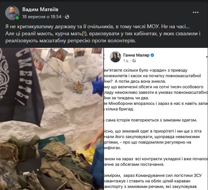 Окрім того, як адвокат я здійснюю захист волонтерки Ольги Косован у кримінальному провадженні. А до повідомлення Ользі про підозру, яке мало місце 18 серпня 2022 року, я представляв інтереси власників (володільців) майна, яке було вилучено під час обшуків у даному провадженні (тканина, метал, бронеплити, плитоноски, готові бронежилети, розвантажувальні жилети). То, як мовиться, я в матеріалі.
