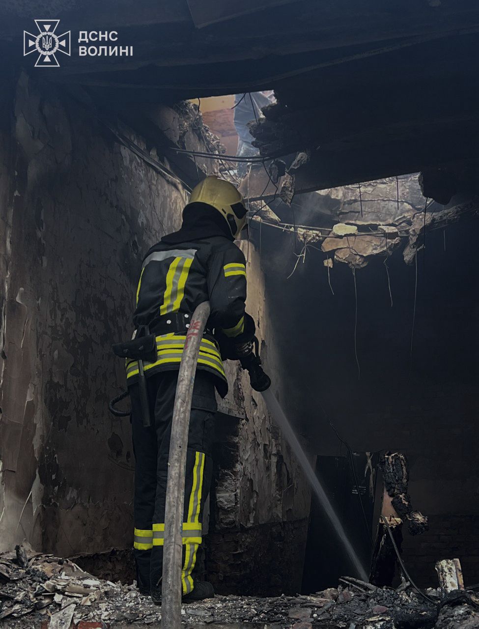 По 12:00 рятувальники Волині поінформували, що гасили пожежу через ворожу атаку.