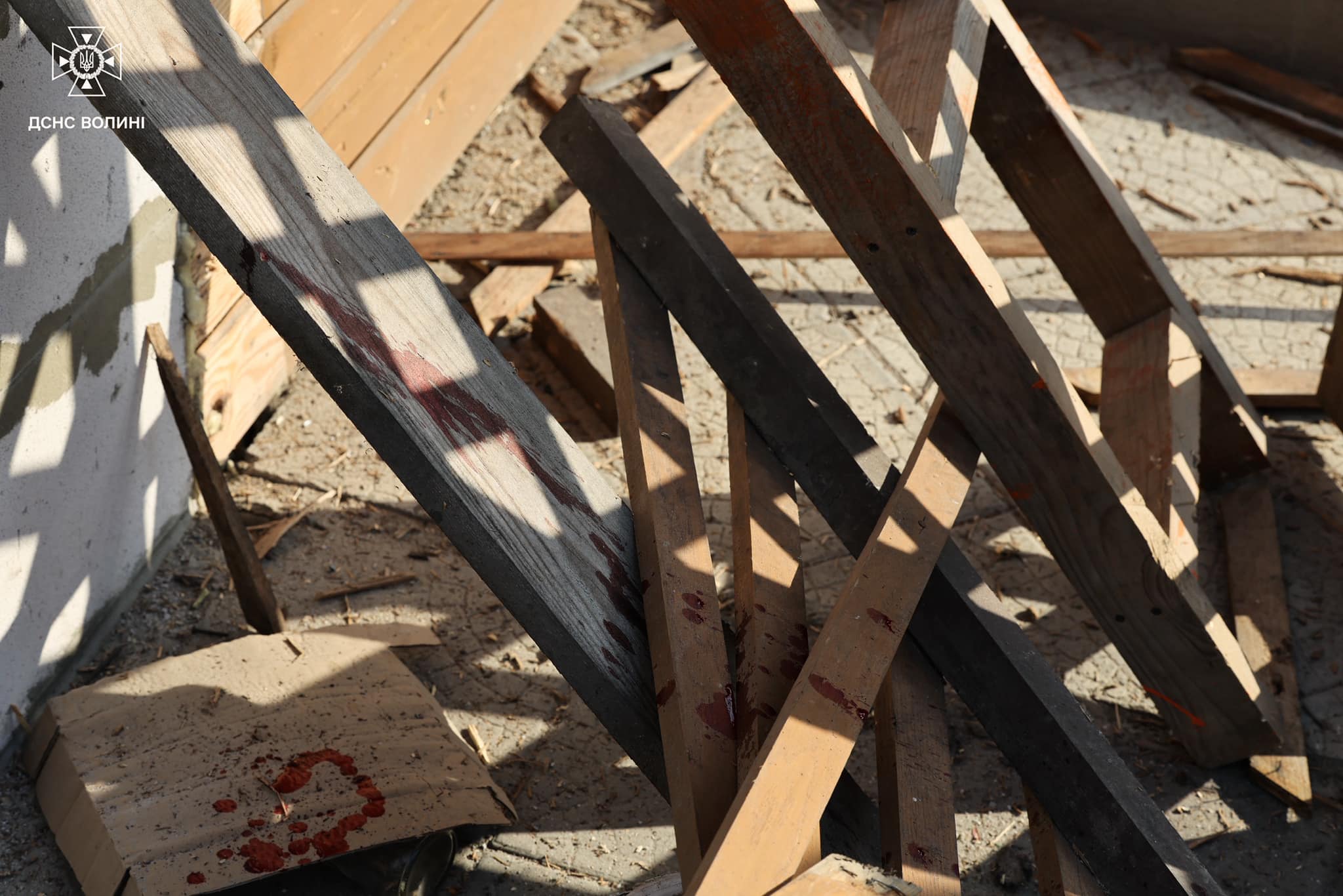 Близько 10:00 головне управління ДСНС України у Волинській області повідомило про травмовану унаслідок атаки жінку, її порізали уламки скла. 48-річна місцева мешканка, як інформує Суспільне Луцьк, саме йшла відчиняти місцевий магазин, у якому працює. Постраждалу з пораненнями руки, ноги та спини госпіталізували. Вона в стані середньої важкості, їй робитимуть операцію.