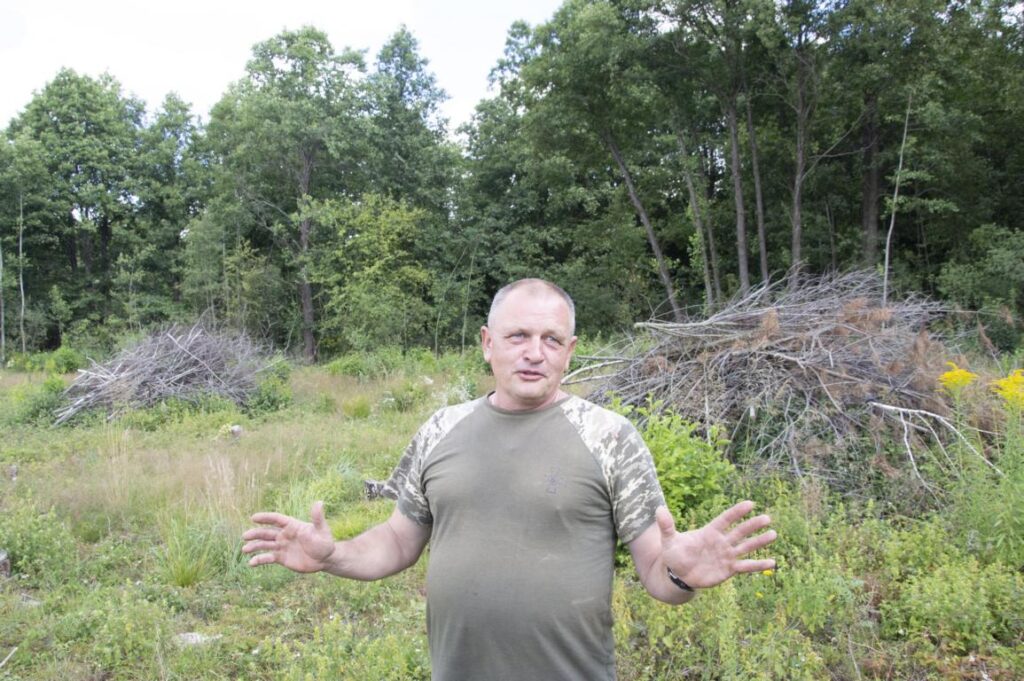 «Тут була нормальна посадка, майже такої ж висоти як ліс. І її просто вирізали орендарі. Але мешканці села з цієї деревини нічого не отримали. І військові та їх родини не отримали. Вони вирізають тільки найкращу деревину. Вивозили по 5-6 фур деревини щодня. Все менше лишається. Ніби обіцяли розширяти поля, але фактично зрізали дерева і все. Скоро рік, як вони нічого із цією землею не роблять», — розповідає місцевий мешканець Віктор Бугайчук.