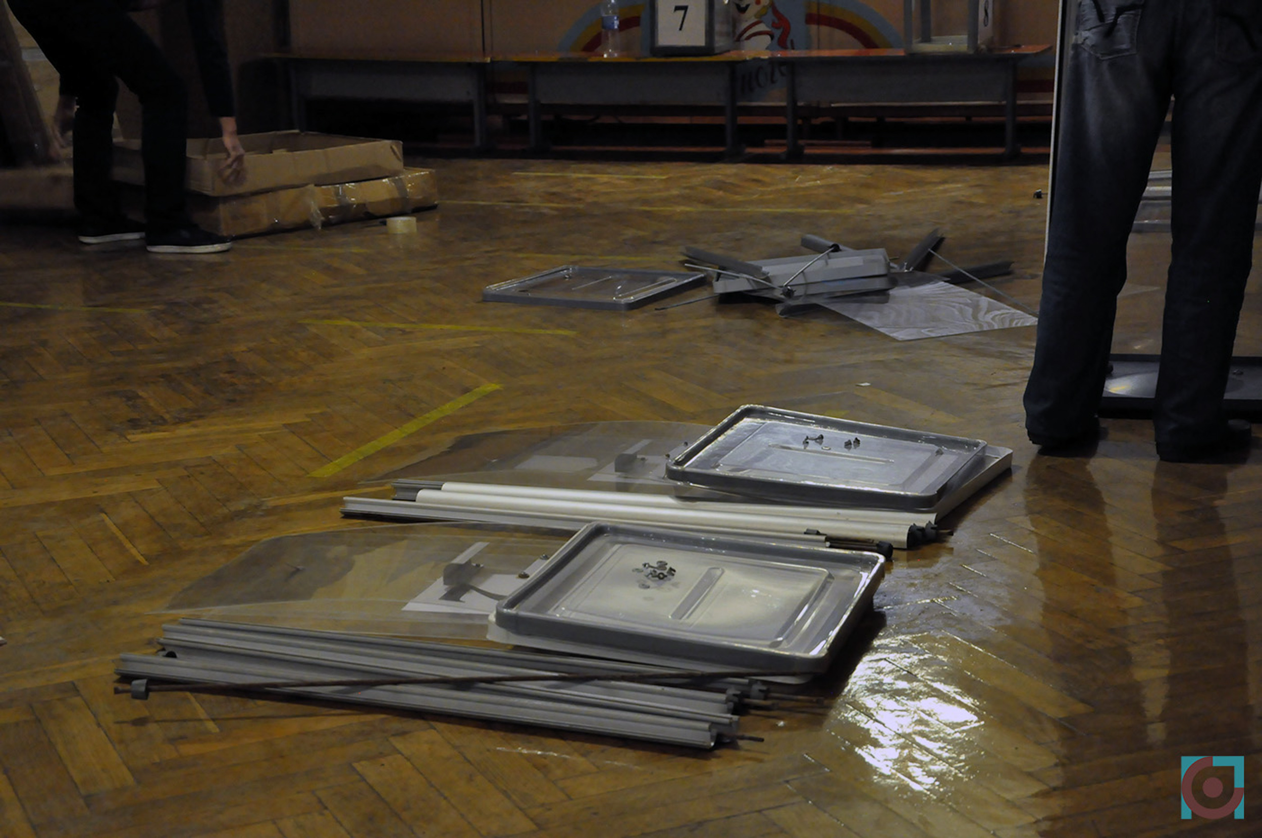 Голоси підраховано швидко. Більше часу займає заповнювання протоколів. Поки цим займаються Андрій Боярчук і Анна Полухтович, члени комісії ставлять на місце столи – так, як ті мають стояти вже в їдальні, а не на дільниці. Урни розбирають також і кожну пакують в окремий ящик. Вочевидь, вже до наступних виборів.