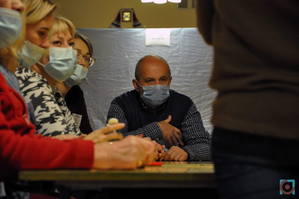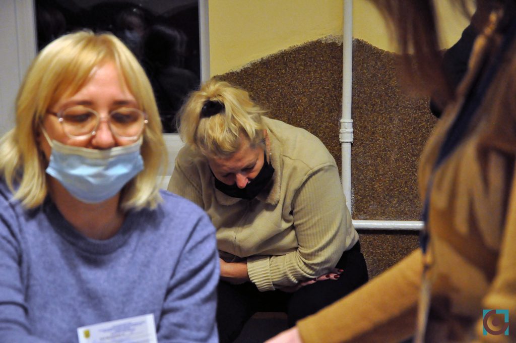 Тим часом ближче до 19-ої на дільницю приходять нові виборці. Повертаюся в приміщення на другому поверсі. Коли фотографую, один з членів комісії турботливо запитує, чи у мене виходить. Поки перекидаємось репліками, виловлюю фразу іншого чоловіка з ДВК із вловимою іронією: «Журналіст. Висвітлює суспільне життя».