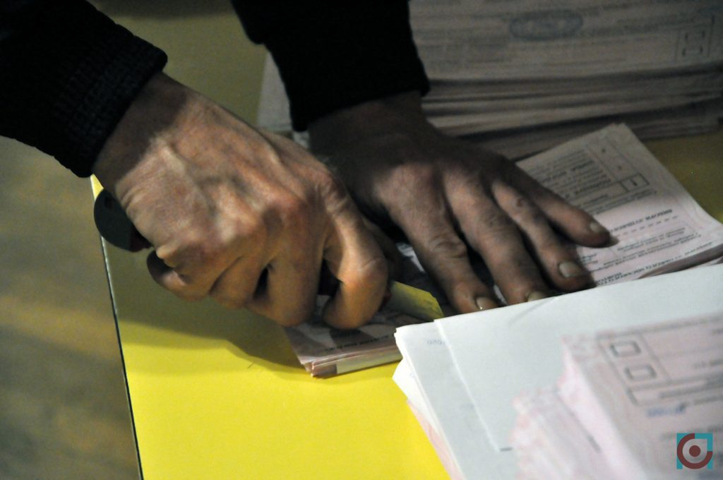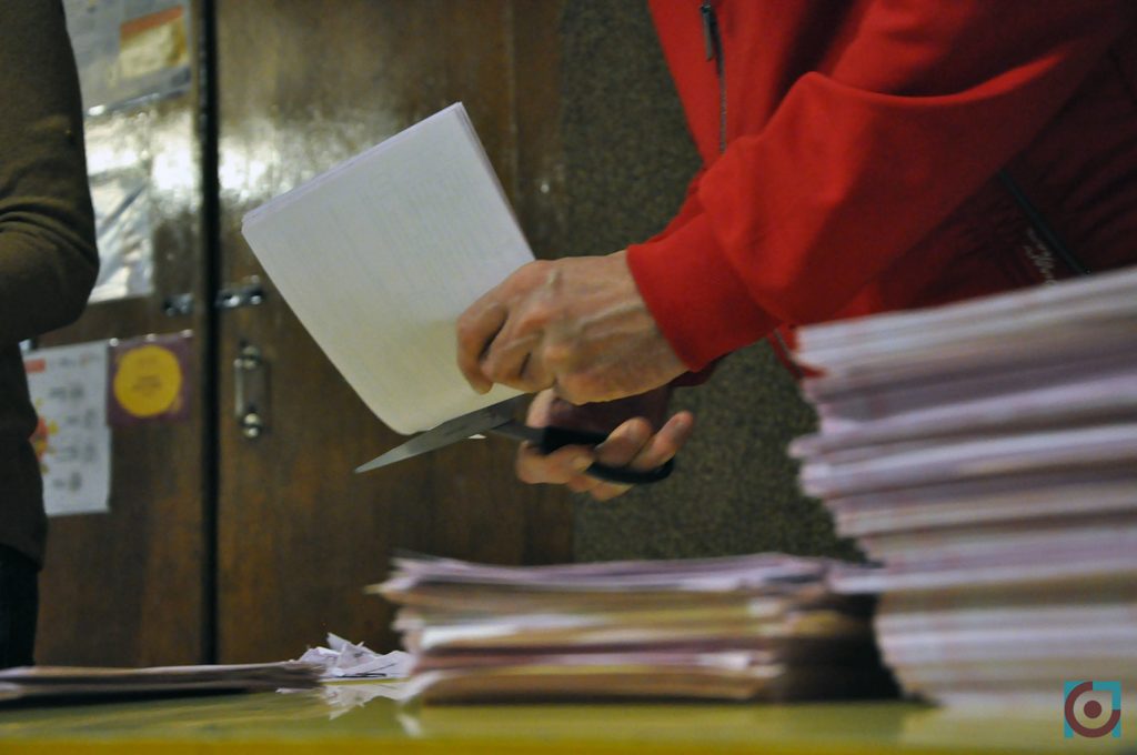 Коли всі корінці і чисті бюлетені перераховано, кілька членів комісії беруться відрізати праві нижні кути від невикористаних. Обов’язкова процедура, яка у цьому випадку займає близько 20 хвилин.