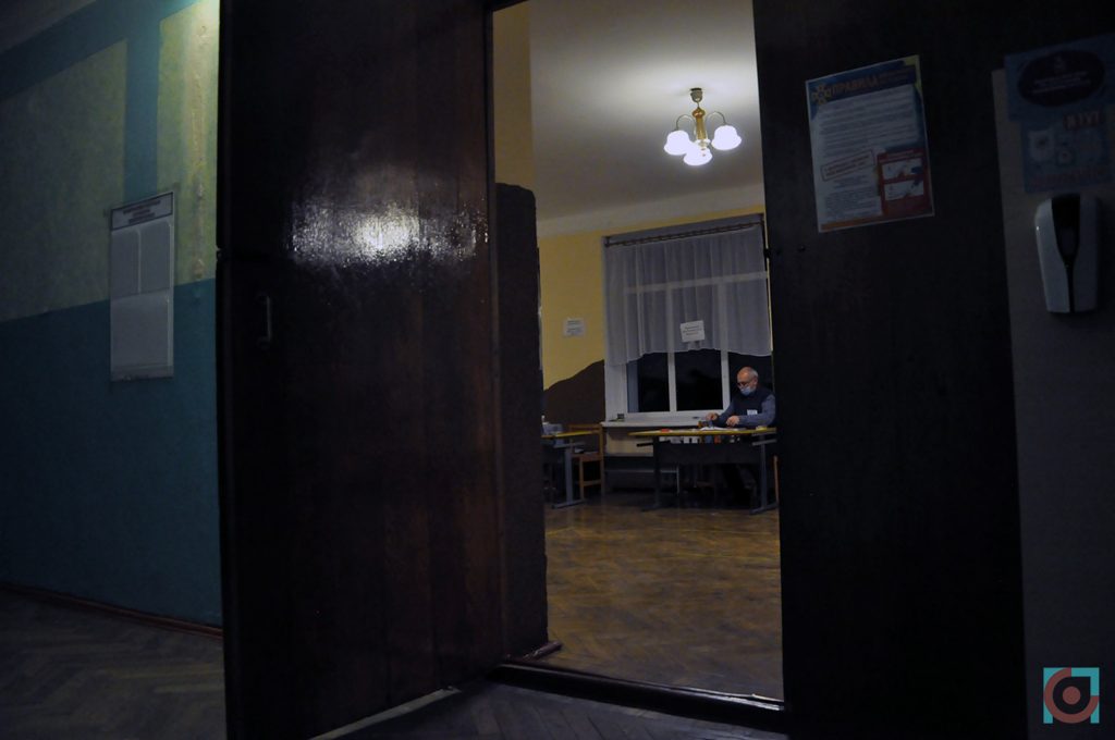 Коли виходжу надвір, щоб сфотографувати саму школу, до мене підходить член ДВК. Запитує, що фотографую. Слово за слово і він розповідає – йому майже 75 і у нього безсоння. Тому, де не спати вночі, вдома чи на дільниці, йому не надто принципово, а тут принаймні не один. Додає, що на першому турі був у цій же школі до ранку, та сьогодні мають впоратися швидше.