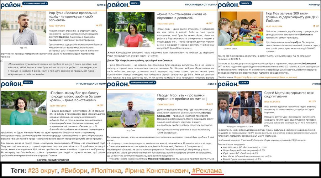 В кожному окрузі кандидати активно використовували місцеві «районки». Деякі з них отримали від кандидатів від 20 до 77 тисяч гривень за місяць виборчої кампанії.