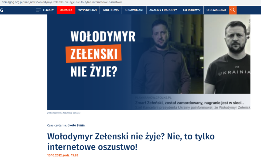 Також у мережі «розганяли» новину, що Володимир Зеленський вже не живий. Як пише «Demagog», у кількох польських групах писали про смерть Зеленського, додаючи до цього фото з чорною стрічкою та свічкою. Звісно, після поширених фото Володимир Зеленський й сам неодноразово довів, що він живий. Але після прочитаної новини одразу виникає питання: «Навіщо?».