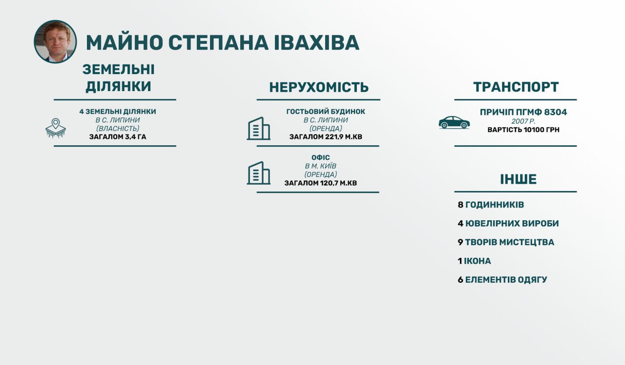 Нардеп та його колишня дружина мають цінні папери у тринадцяти та корпоративні права у дванадцяти компаніях як в Україні, так і за кордоном. У 2022-му Світлана Івахів була бенефіціарною власницею у 46, а Степан Івахів – у 25 компаніях, які знаходяться в Україні та за її межами.