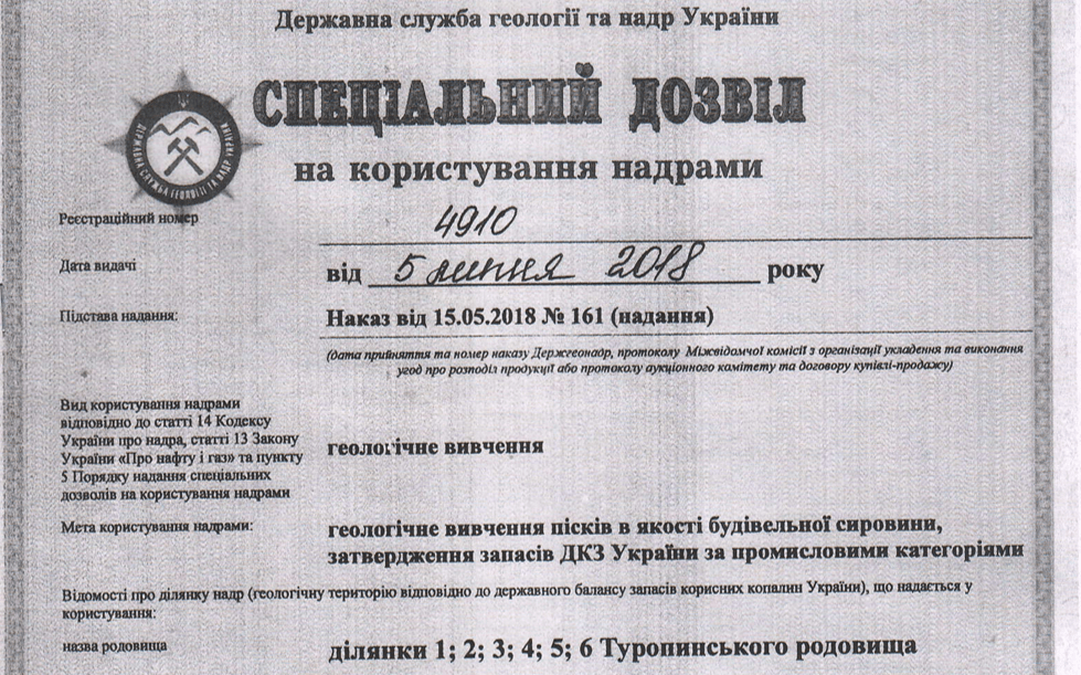 Це хоч і не суперечить законодавству, але викликає сумнів, так би мовити, економічна доцільність досліджувати поклади піску там, де його вже готується добувати зовсім інша структура.