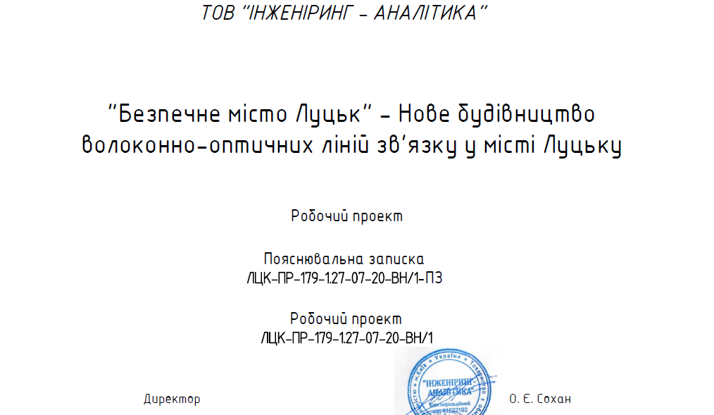 | 4. | Нове будівництво волоконно–оптичних ліній зв’язку у м. Луцьку | 15.09.2020 | Спрощена/допорогова | ТзОВ «Інженіринг–аналітика» | – | 674 000,00 |