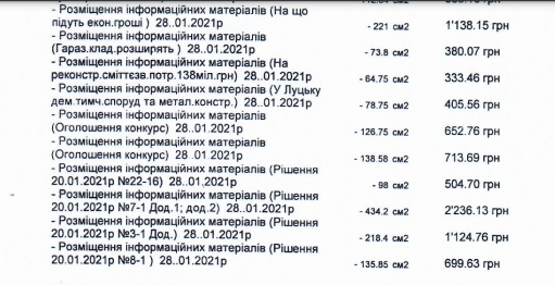 Рішенням же Луцької міської ради від 23.12.2020 № 2/9 затверджено Програму з висвітлення діяльності Луцької міської ради на 2021 – 2023 роки. Відповідно до цієї програми, Луцька міська рада у 2021 році планує витратити на висвітлення своєї діяльності 1 360, 0 тис. грн.