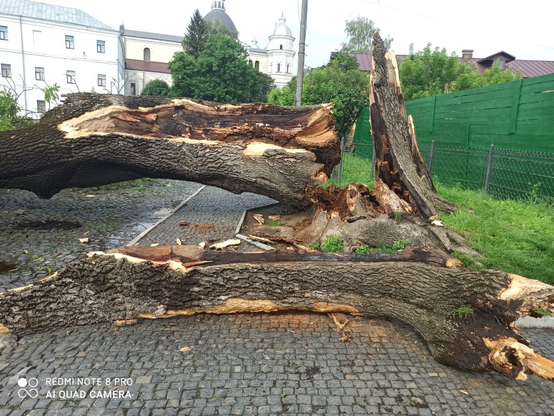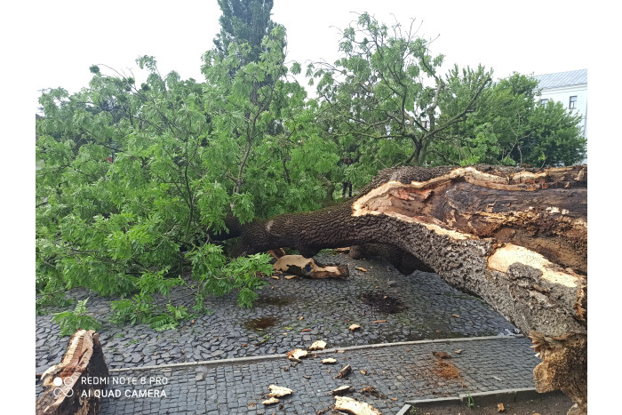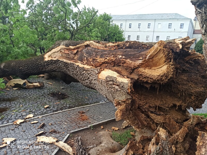 Сьогодні, 30 червня о 03:26 внаслідок потужної зливи зламалося та впало одне з найстаріших дерев у Луцьку – Лесин ясен. Він ріс на Замковій площі в межах історико-архітектурного заповідника «Старий Луцьк».