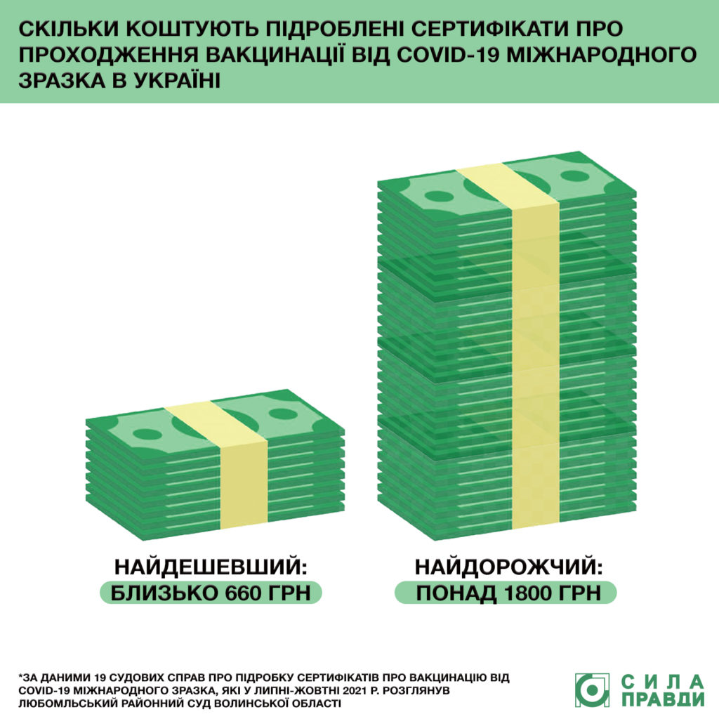 Дехто замовляв довідки через групу у Viber і отримував на «Новій пошті». Ніхто з них не видав осіб, які їм так «допомогли». Сертифікати купували не тільки за гривні, а й за польські злоті та євро. Найдешевший коштував 100 польських злотих, а це трохи більше 660 гривень, а найдорожчий – 60 євро, що в перерахунку на українські гривні становить понад 1800.