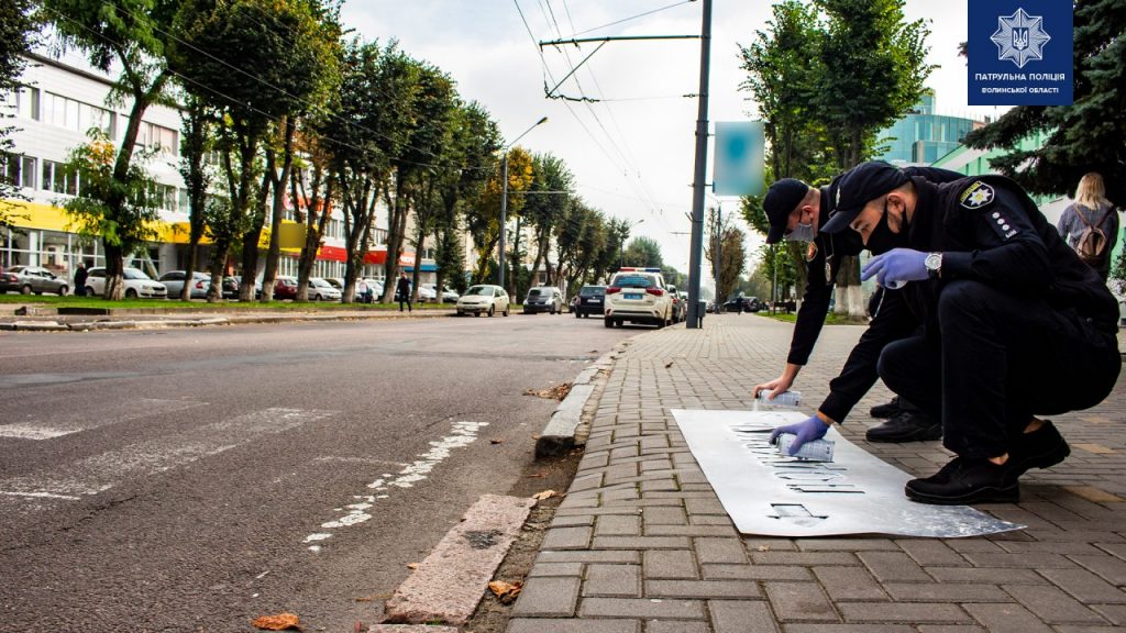Також у різних містах України, в тому числі і на Волині, поліцейські спільно з волонтерами проводять акцію «Відповідальний пішохід», під час якої наносять у місцях концентрації ДТП спеціальні позначки з застереженнями для пішоходів. Наприклад, перед нерегульованими пішохідними переходами наносили застереження з надписами: «Подивись праворуч», «Подивись ліворуч», «Візьми дитину за руку» тощо.