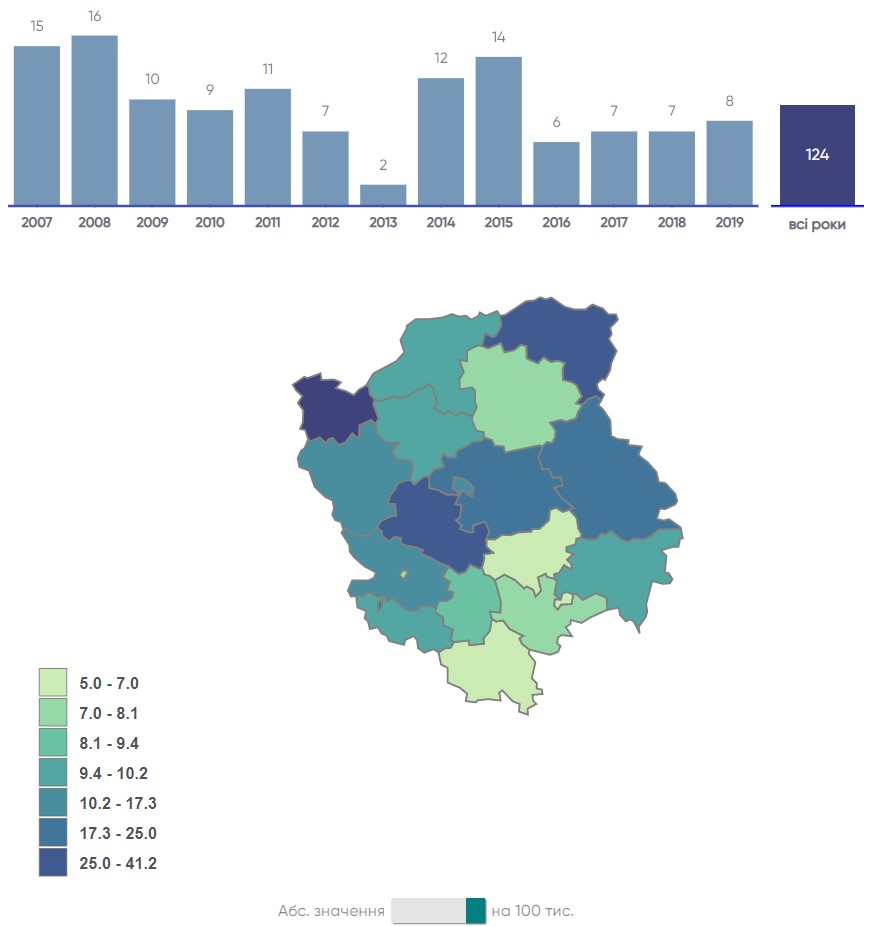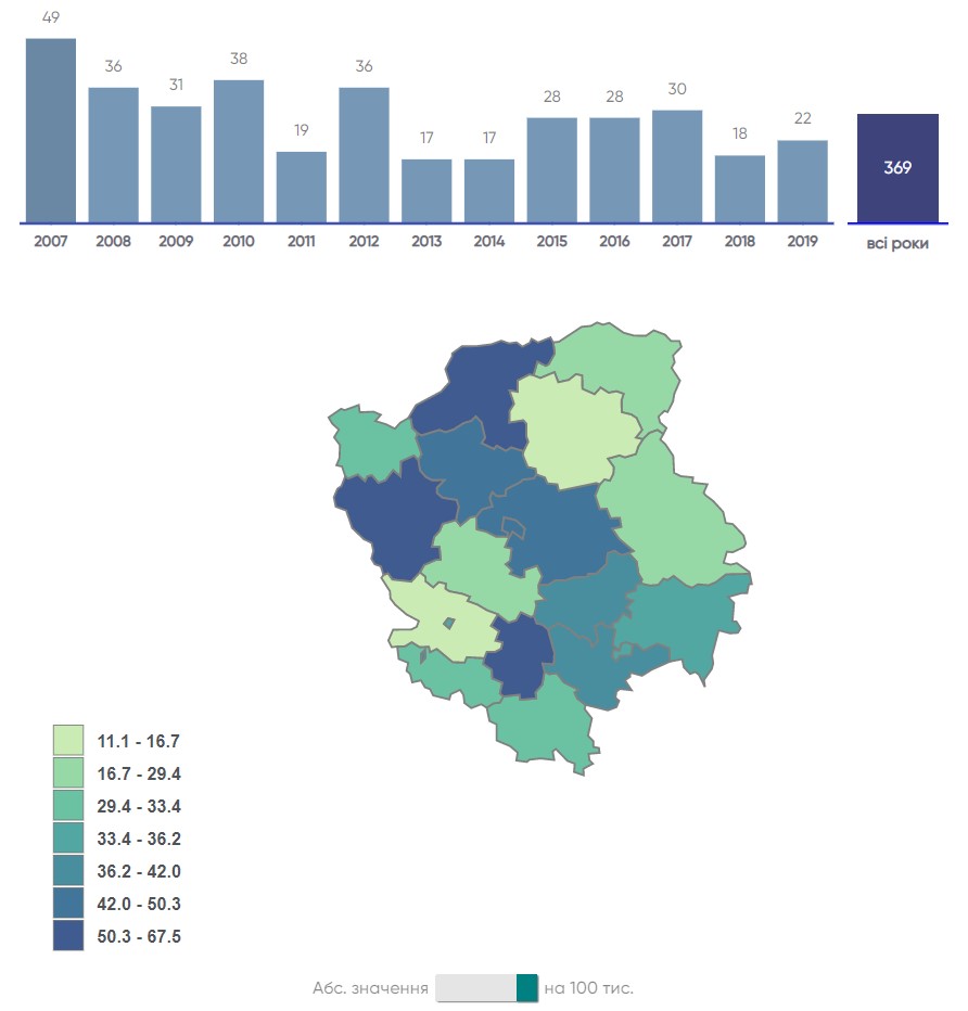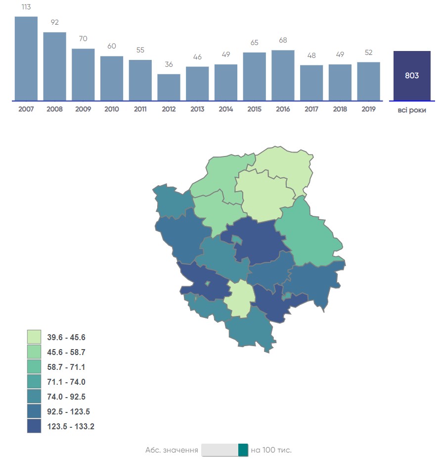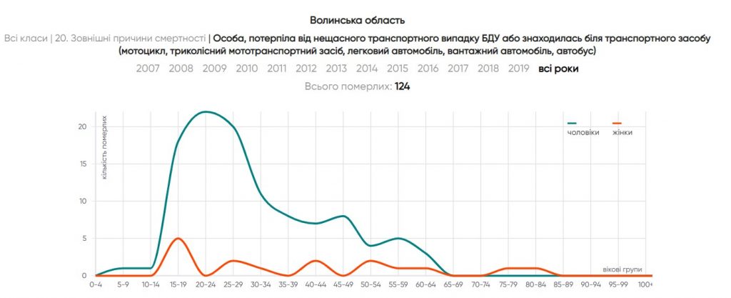 Таким чином, загалом у період з 2007 і до 2019 року через ДТП на Волині загинуло 1 802 людини.