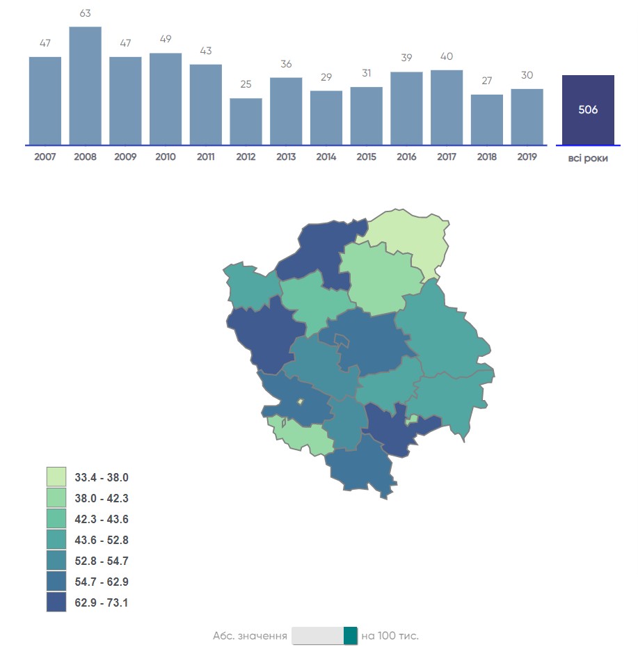 Нагадаємо, «Сила правди» щороку аналізує на Волині статистику покарань водіїв, затриманих нетверезими за кермом. Цього року «Сила правди» зібрала статистичні дані про смертність волинян за останні 13 років та створив на основі них інтерактивну графіку, на якій можна побачити від чого найчастіше помирають мешканці області.