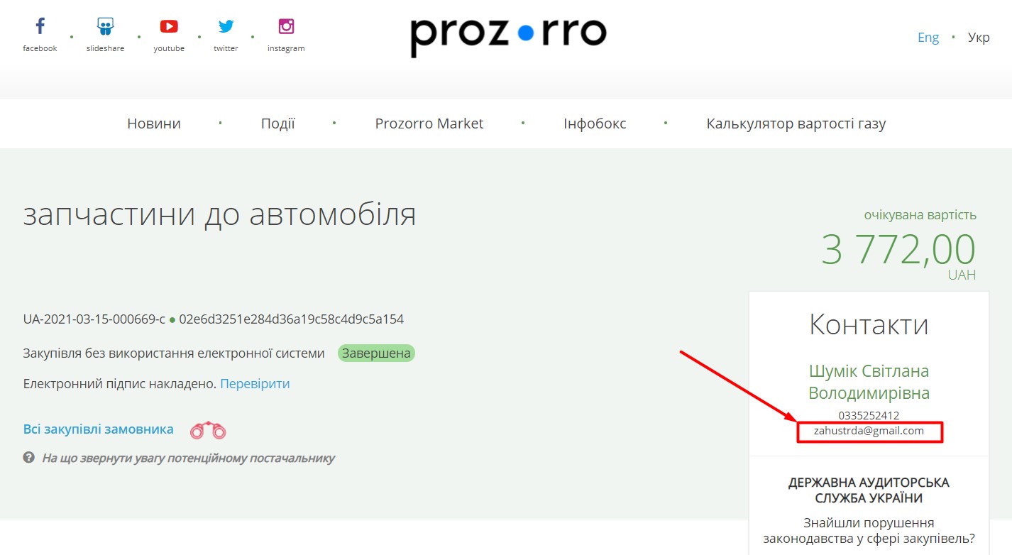 Заступниця начальника відділу фінансово-господарського обліку-заступниця головного бухгалтера Управління соціального захисту населення Ковельської РДА Світлана Шумік, з лютого по квітень 2021 року неодноразово вказувала гуглівську електронну скриньку в документах в електронній системі публічних закупівель Prozorro. Цим вона порушила законодавство, адже посадові особи органів влади повинні офіційно листуватися з електронних скриньок виключно з доменами «.gov.ua» та «.укр». За законом органи влади зобов’язані реєструвати свої офіційні веб-сайти у домені «.gov.ua», а адреси електронної пошти повинні відповідати назвам їх доменів.