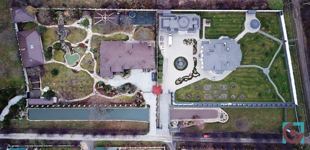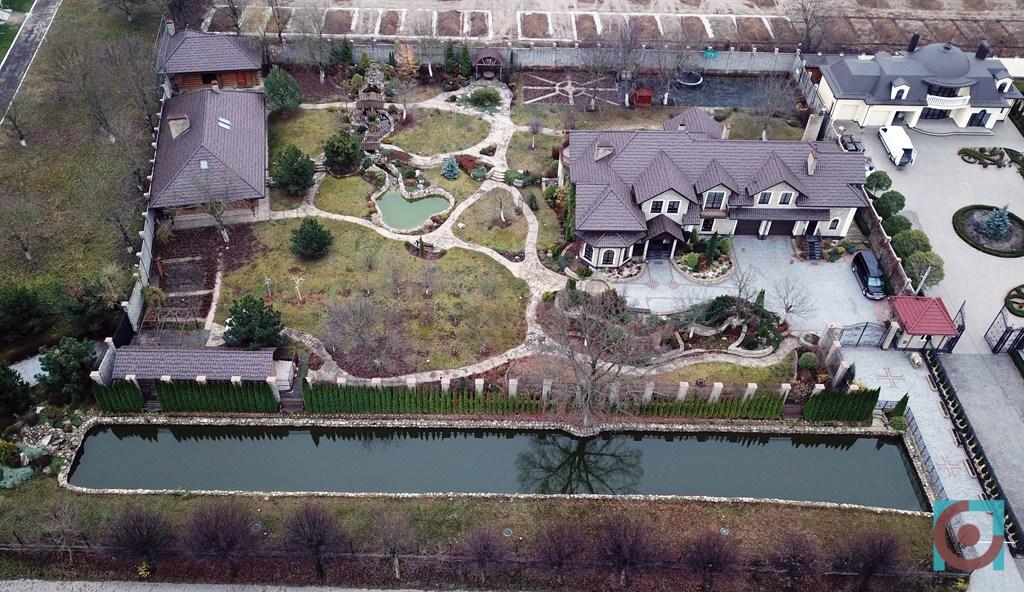 Це маєток Лазорків у селі Тарасове поблизу Луцька. Площа будинку – 738 кв. м., земельної ділянки – близько півгектара. Тут фонтан, ставок, вишукане декоративне оформлення двору маєтку.